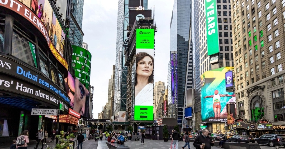 H Χάρις Αλεξίου, εμφανίστηκε σε billboard στη φημισμένη Times Square της Νέας Υόρκης ως πρέσβειρα Ελλάδας και Κύπρου στην παγκόσμια καμπάνια EQUAL του Spotify με θέμα την ισότητα και την ενδυνάμωση της γυναικείας επιρροής στην μουσική βιομηχανία.