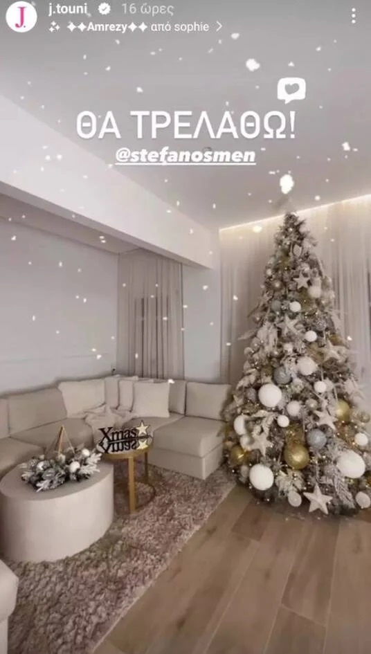 Όπως αποκάλυψε στους διαδικτυακούς της φίλους η Ιωάννα, η οποία διανύει τον έβδομο μήνα της εγκυμοσύνης της, το δέντρο της είναι το ίδιο με πέρυσι, όπως και τα περισσότερα από τα στολίδια, μόνο που φέτος, είπαν να δώσουν μία πιο χρυσαφένια πινελιά στον στολισμό του που ήταν πράγματι πολύ πλούσιος.