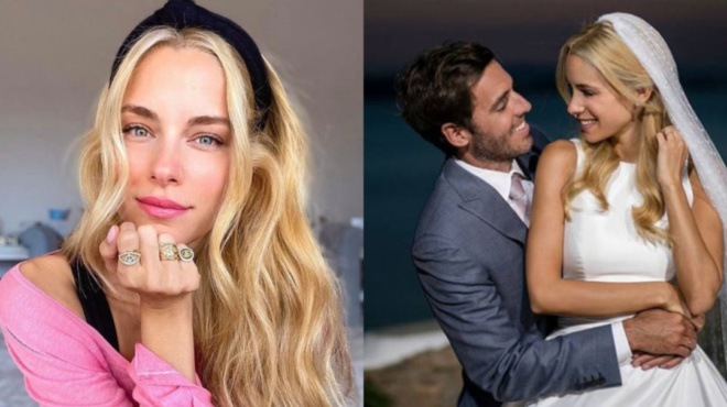 Όπως αποκάλυψε σε σχόλιο κάτω από τη φωτογραφία το φόρεμα της το χάρισε η πεθερά της, Ελένη Κόκκαλη, η οποία το είχε φορέσει 13 χρόνια πριν στη Μύκονο.