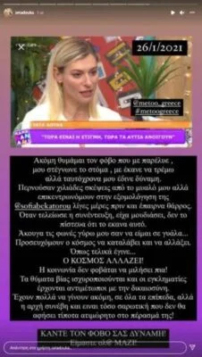 Όταν τελείωσε η συνέντευξη είχα μουδιάσει, δεν το πίστευα ότι το έκανα αυτό. Άκουγα τις φωνές γύρω μου σαν να είμαι σε γυάλα. Προσευχόμουν ο κόσμος να καταλάβει και να αλλάξει. Όπως τελικά έγινε. Ο ΚΟΣΜΟΣ ΑΛΛΑΖΕΙ. Η κοινωνία δεν φοβάται να μιλήσει πια.