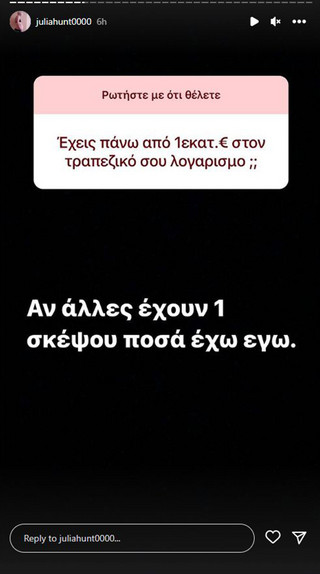 Όταν τη ρώτησαν πόσα χρήματα έχει κερδίσει από τον λογαριασμό της στην πλατφόρμα, η ίδια απάντησε: «Τον τελευταίο χρόνο μισό εκατομμύριο. Το κάνω 6 χρόνια τώρα».