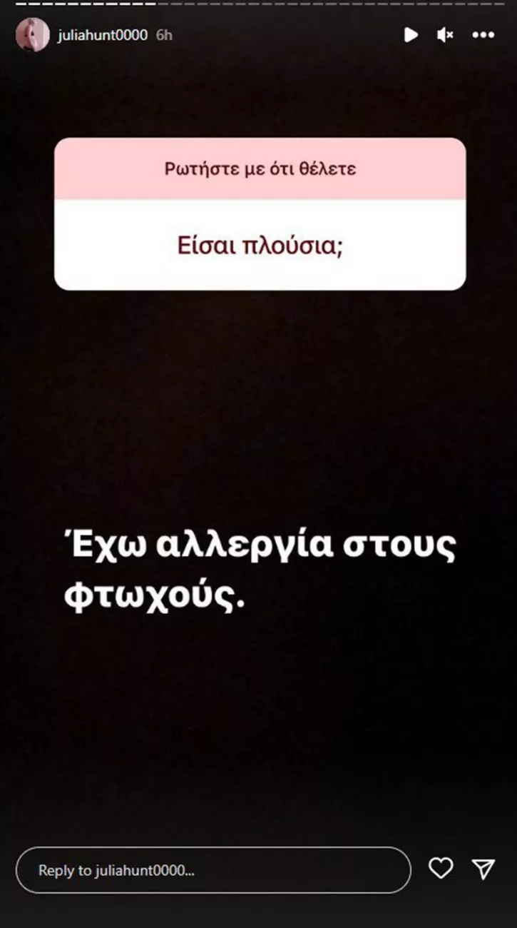 Η γνωστή σε όλους μας Τζούλια Αλεξανδράτου εκτός από το ότι περιμένει το πρώτο της παιδί απάντησε και σε ερωτήσεις των θαυμαστών της όπου κάποιος τη ρώτησε πόσα λεφτά βγάζει και εκείνη τον αποστόμωσε με την απάντηση της.