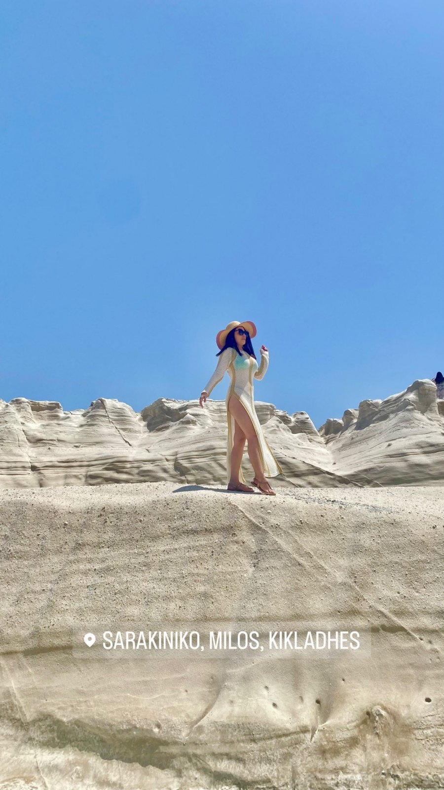 Έτσι, μετά την Μύκονο, σειρά για την 37χρονη είχε η Μήλος, όπου επισκέφθηκε τις μαγευτικές παραλίες του νησιού και έκανε βόλτες, φορώντας το μπικίνι της.