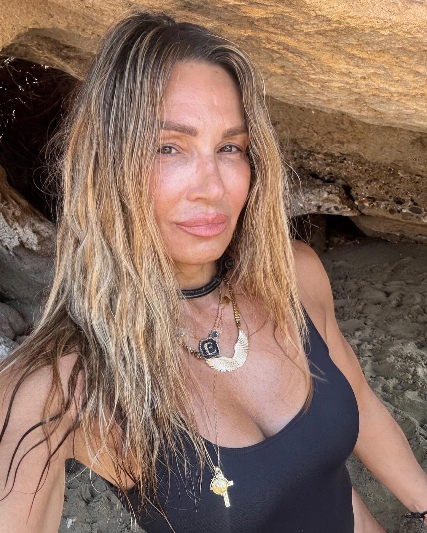 Χωρίς να έχει κανέναν φόβο να πει την ηλικία της, η Ελένη Πετρουλάκη δείχνει το πρόσωπο και το σώμα της, όπως ακριβώς είναι – χωρίς φίλτρα – στην παραλία.