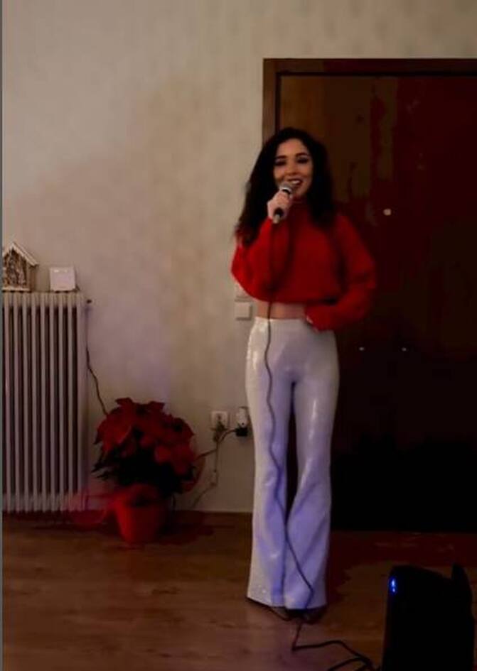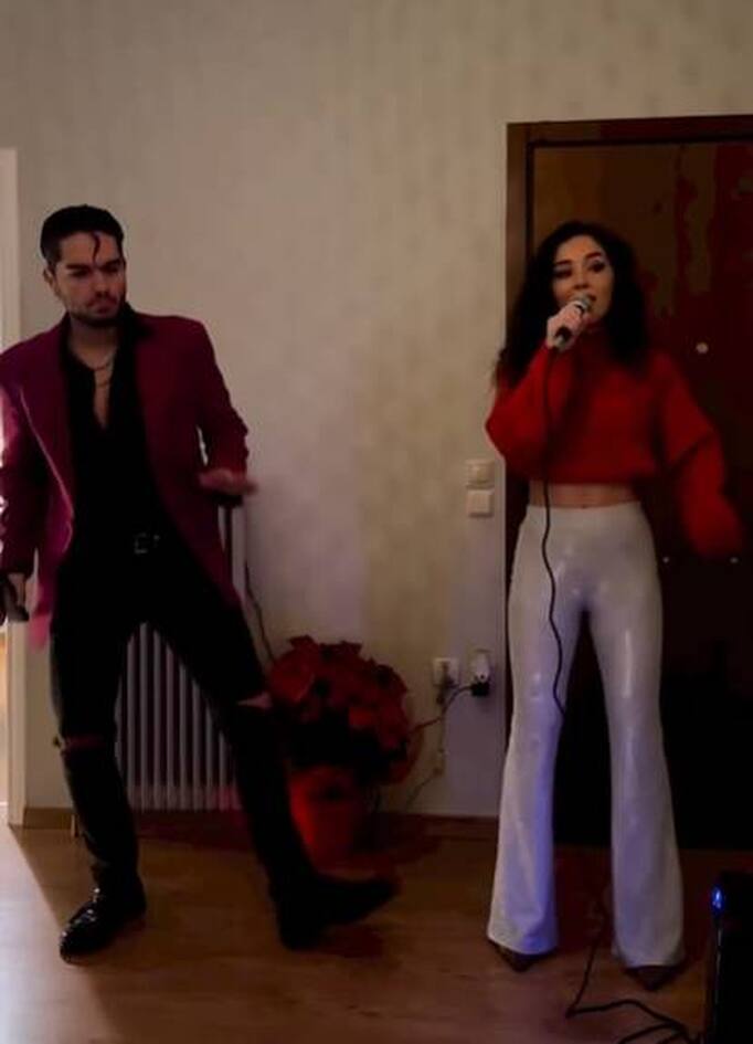Στο βίντεο είδαμε τον Χρήστο Μάστορα να τραγουδά μαζί της χριστουγεννιάτικα τραγούδια ενώ οι φίλοι τους περνούσαν και φαινόντουσαν στα πλάνα!