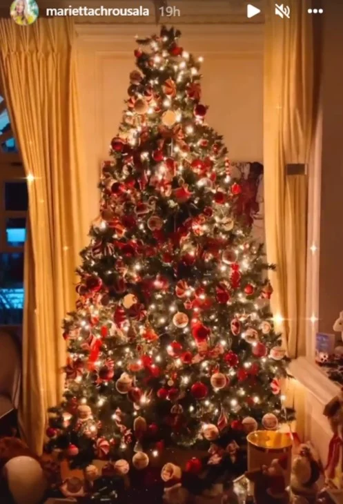 Η Χρουσαλά μέσα από αναρτήσεις στον προσωπικό της λογαριασμό έδειξε λεπτομέρειες από το χριστουγεννιάτικο δέντρο. Η ίδια, ανέβασε δύο stories στο Instagram, δείχνοντας στους διαδικτυακούς της φίλους πόσο «καλά τα κατάφερε», με το δέντρο, το οποίο στόλισε με κόκκινα και λευκά στολίδια.
