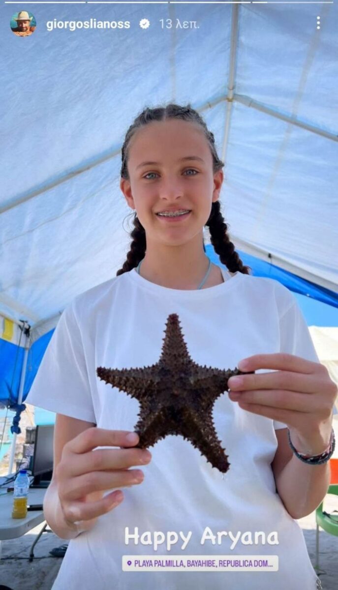 Στη φωτογραφία, η Αριάνα έχει πλεξούδες τα μαλλιά της, φορά σιδεράκια και κρατά στα χέρια της ένα τεράστιο αστερία που βρήκε στην παραλία που γίνονται τα γυρίσματα.Τελευταία φορά που είχε δημοσιεύσει φωτογραφία με την κόρη του ήταν τον Ιούνιο του 2022, τότε που μαζί με την Αριάνα είχε δείξει και τους δυο γιους του, Κωνσταντίνο και Ιάσωνα, που έχει αποκτήσει από τον πρώτο του γάμο.