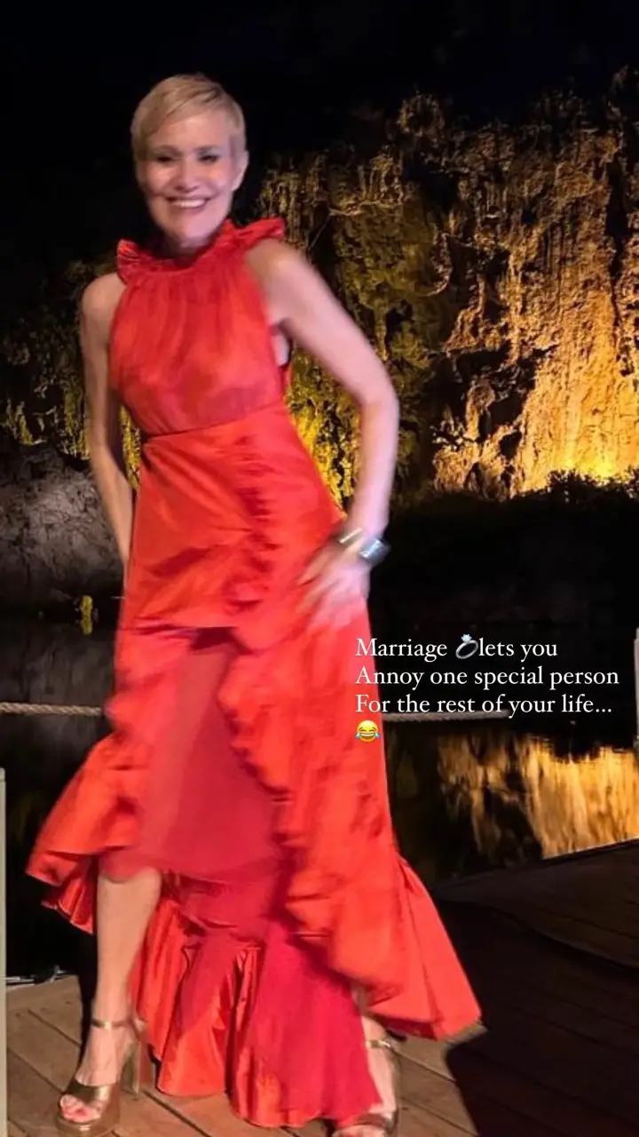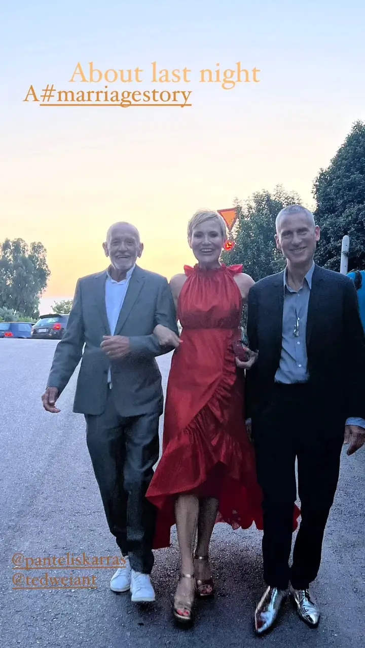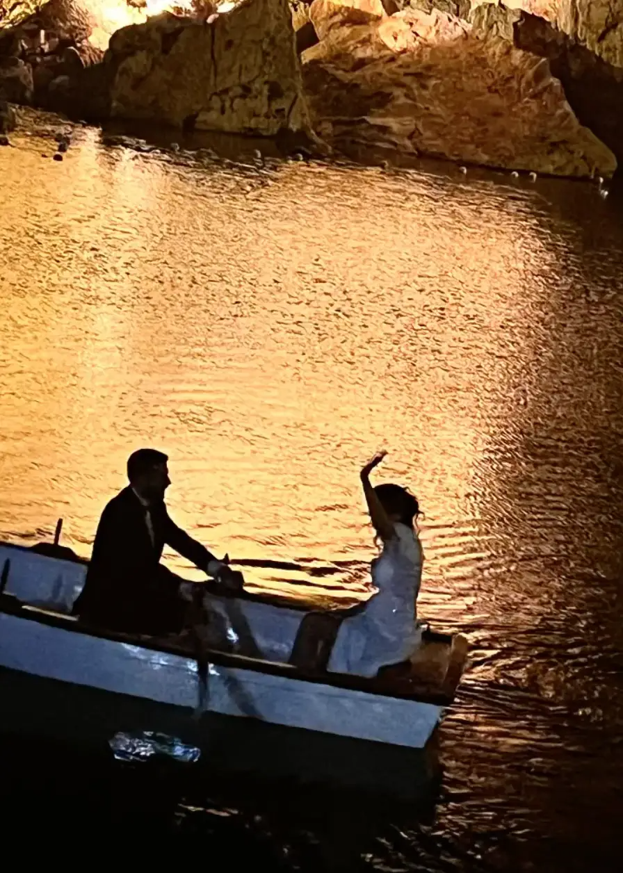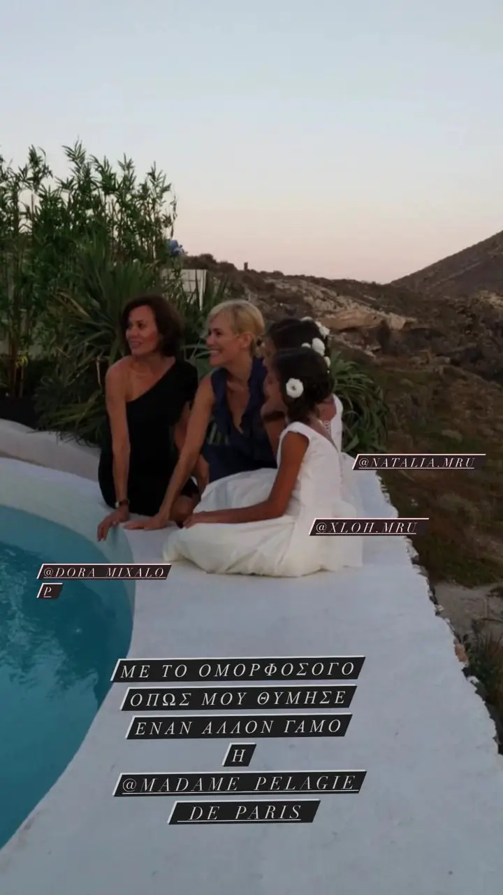 Επιπλέον, ανάρτησε σε Instagram Story φωτογραφίες από τον γάμο της αγαπημένης της φίλης, Αυγής, μαζί με τον σύντροφό της, Αντώνη, οι οποίοι έκαναν την είσοδό τους στην εκκλησία με μια βάρκα.