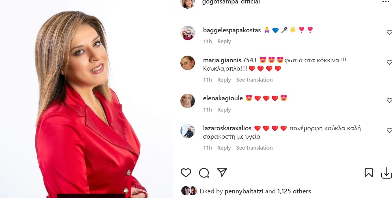 Ειδικότερα, η τραγουδίστρια δημοσίευσε στον προσωπικό της λογαριασμό στο instagram μία φωτογραφία με ένα υπέροχο κόκκινο κοστούμι και τα σχόλια ήταν μόνο κολακευτικά από τους διαδικτυακούς της φίλους.