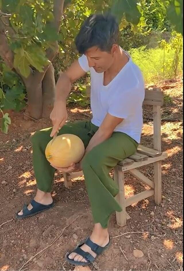 Πιο συγκεκριμένα, ο Σάκης Ρουβάς δημοσίευσε ένα σύντομο απόσπασμα στο οποίο τον παρακολουθούμε να κόβει ένα ωραιότατο πεπονάκι από το μποστάνι του και να το δοκιμάζει! «Από την παραγωγή στην κατανάλωση! Με συγκινεί κάθε φορά το μεγαλείο της φύσης και οι καρποί που απλόχερα μας προσφέρει» γράφει σαν λεζάντα ο δημοφιλής καλλιτέχνης στα social media.