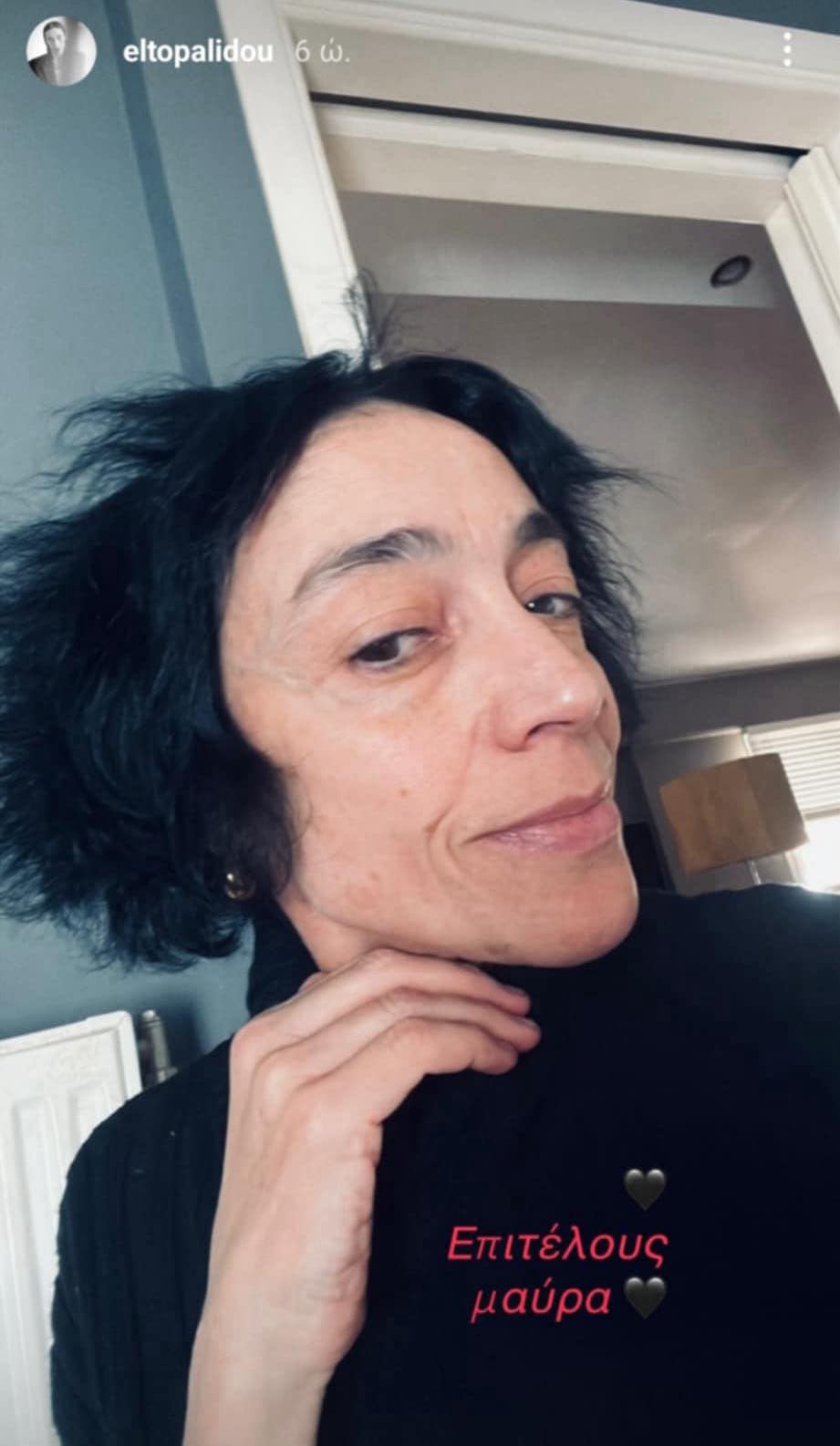 Την αποκάλυψη έκανε η ίδια μέσω μιας ανάρτησης στον λογαριασμό της στο Instagram. Πιο συγκεκριμένα, η Έλενα Τοπαλίδου δημοσίευσε μια φωτογραφία της με μαύρα μαλλιά και έγραψε, «Επιτέλους μαύρα».