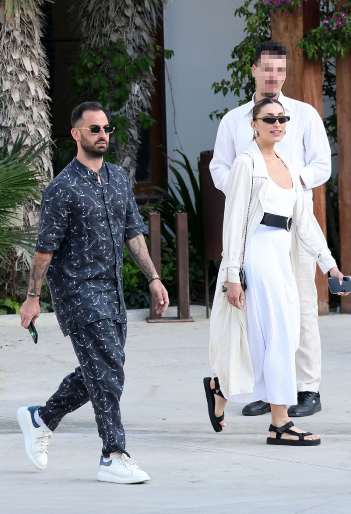 Οι δυο τους απαθανατίστηκαν να περπατάνε έξω από γνωστό μαγαζί της Μυκόνου, αδιαφορώντας για τα αδιάφορα βλέμματα, αφού δεν κρύβουν πως είναι ζευγάρι.