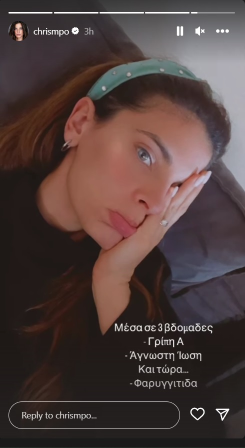 Το Insta Story της Χριστίνας Μπόμπα για τη φαρυγγίτιδα – και όχι μόνο