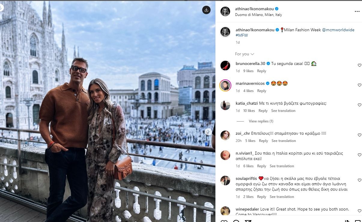 Η Αθηνά πόσταρε φωτογραφίες της με τον Μπρούνο και εκείνος σχολίασε ότι η Ιταλία είναι το δεύτερο σπίτι της.