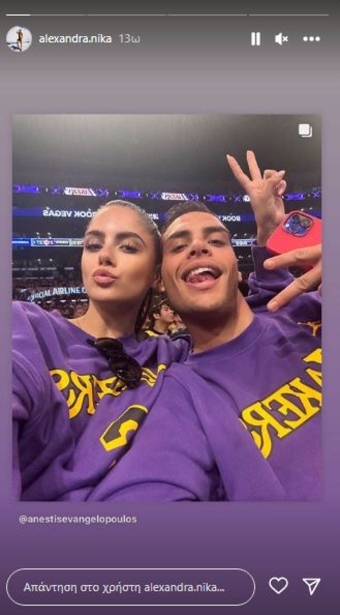 Η Αλεξάνδρα Νίκα, φορώντας ένα λαμπερό μίνι φόρεμα και έχοντας τα μισά μαλλιά της πιασμένα σε κοτσίδα, είχε χειροκροτήσει περήφανη τον σύντροφό της κατά τη διάρκεια της τελετής.