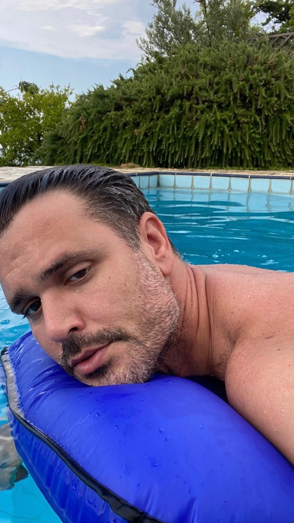 Από εκεί ο Μιχάλης έβγαλε μία selfie μέσα στην πισίνα πάνω σε φουσκωτό στρώμα.