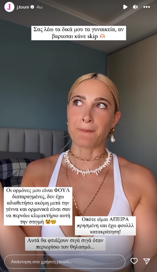 Ιωάννα Τούνη: «Ορμονικά είναι σαν να περνάω κλιμακτήριο»