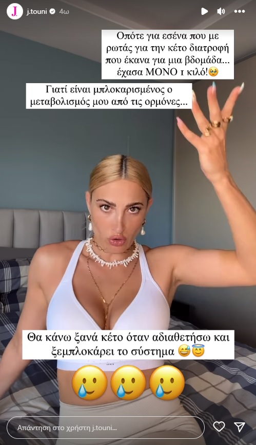 Ο μεταβολισμός μου είναι μπλοκαρισμένος από τις ορμόνες. Θα ξανακάνω διατροφή όταν αδιαθετήσω και ξεμπλοκάρει το σύστημα.