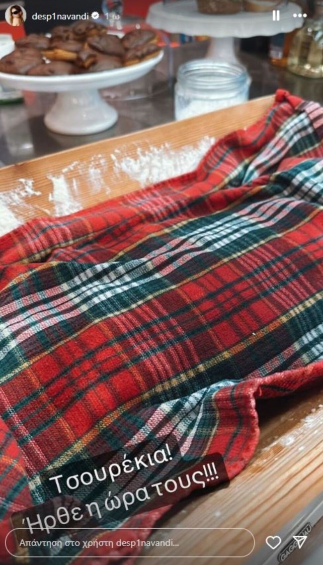 Την απογευματινή της ενασχόληση για την Πρωτομαγιά, αποκάλυψε η ίδια η Δέσποινα Βανδή, αφού αρχικά ανέβασε ένα Instagram story από την προετοιμασία των τσουρεκιών, στο οποίο έγραψε πως “Ήρθε η ώρα τους” ενώ στη συνέχεια ανάρτησε και ένα βίντεο από τη στιγμή που τα έβγαζε από το φούρνο σημειώνοντας ότι “Μοσχομύρισε η γειτονιά”.