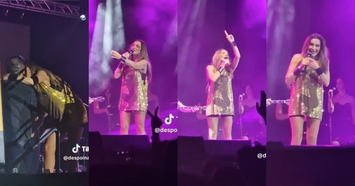 Εκείνη τη στιγμή, η τραγουδίστρια έκανε μια απρόσμενη έκπληξη. Έφυγε από τη σκηνή, κατέβηκε κοντά στο κοινό και αντάλλαξε ένα τρυφερό φιλί με τον Μπισμπίκη.