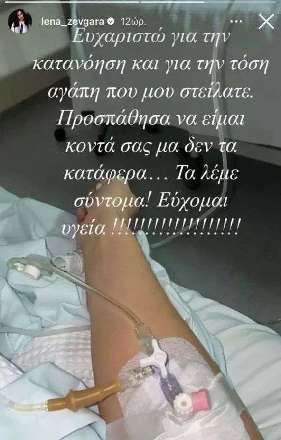 Η Λένα Ζευγαρά μοιράστηκε μία φωτογραφία μέσα από το νοσοκομείο, όπου και ευχαρίστησε τους φανς της για τα μηνύματά τους.