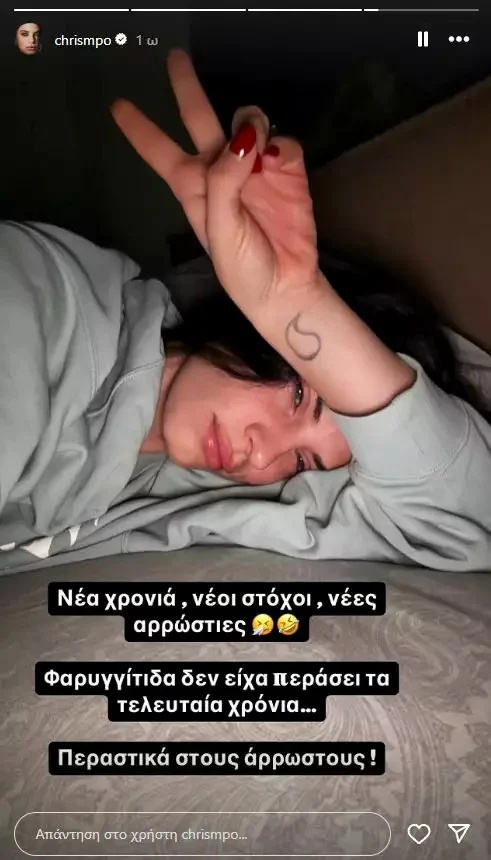 Σε ανάρτησή της, έγραψε χαρακτηριστικά: «Νέα χρονιά, νέοι στόχοι, νέες αρρώστιες. Φαρυγγίτιδα δεν είχα περάσει τα τελευταία χρόνια. Περαστικά άρρωστους».