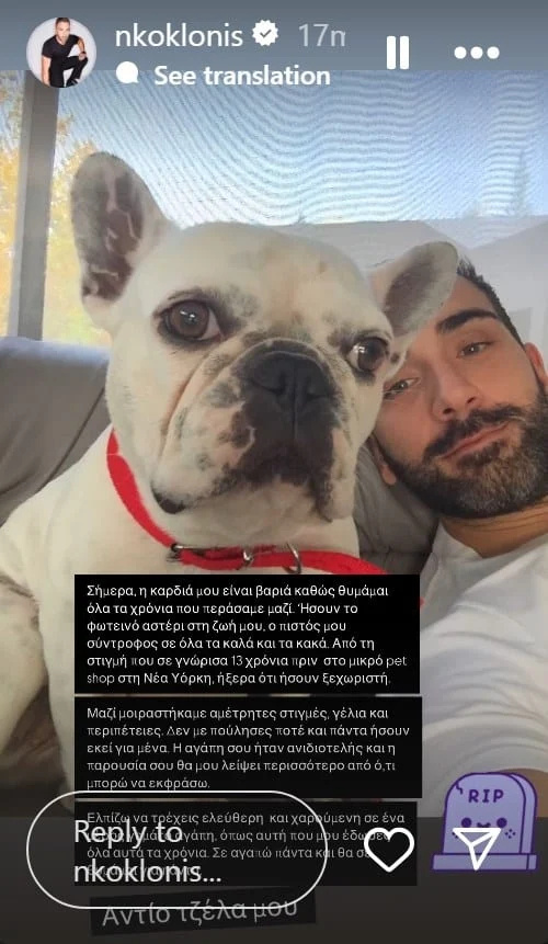 Ο Νίκος Κοκλώνης περνάει δύσκολες ώρες μετά την απώλεια του σκυλιού του.