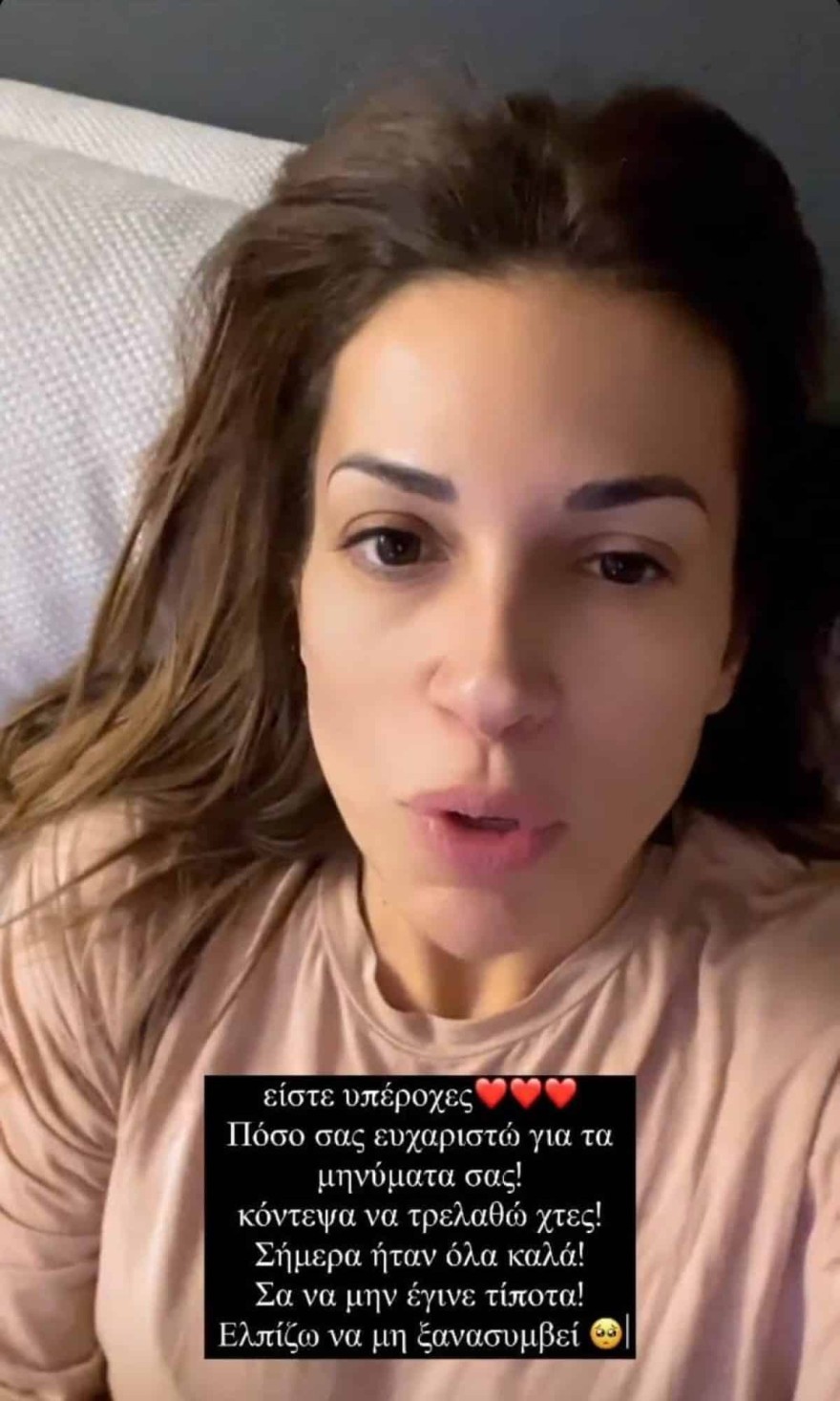 «Είστε υπέροχες. Πόσο σας ευχαριστώ για τα μηνύματά σας! Κόντεψα να τρελαθώ χθες! Σήμερα ήταν όλα καλά! Σαν να μην έγινε τίποτα! Ελπίζω να μην ξανασυμβεί!».