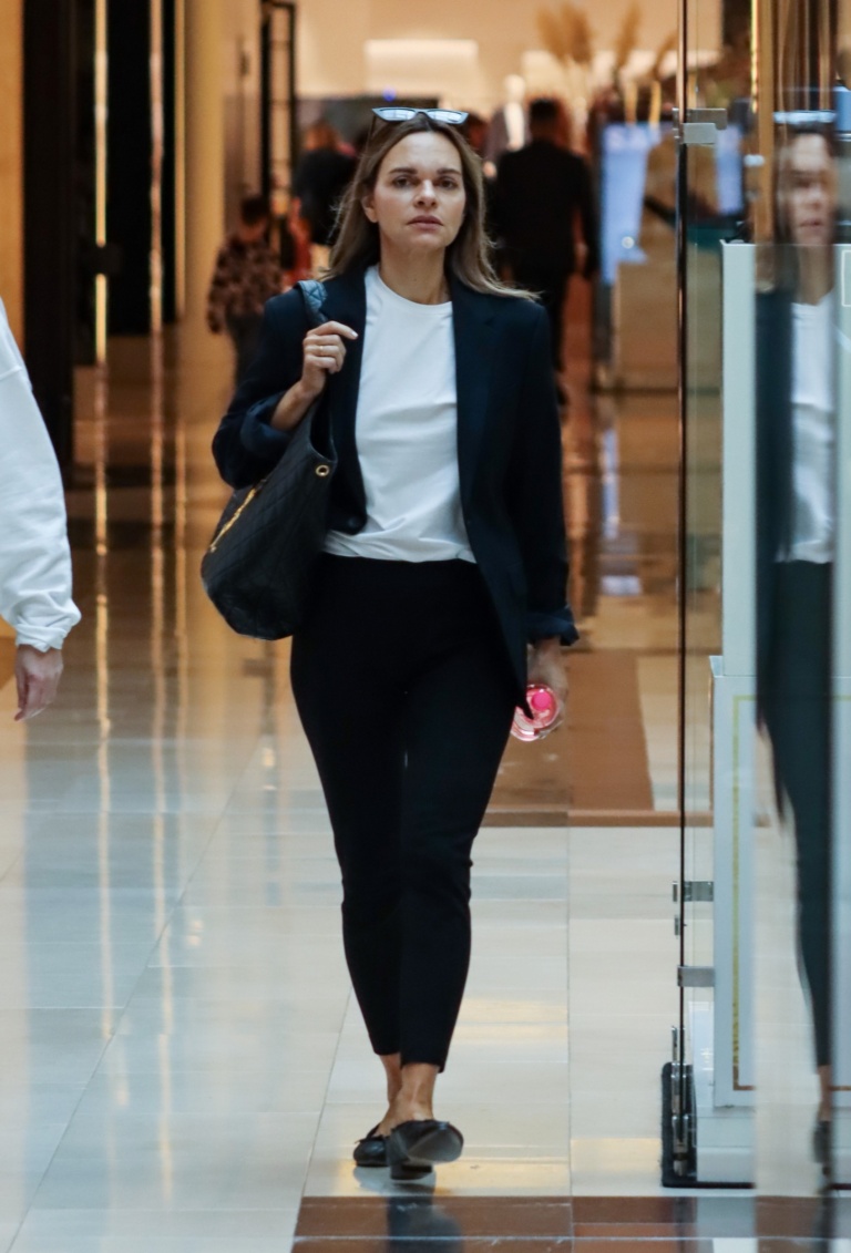 Η ίδια κρατούσε μια τσάντα με τα ψώνια που έκανε, στο ένα χέρι, ενώ με το άλλο, κρατούσε την πανάκριβη τσάντα της, η οποία κοστίζει πολλές χιλιάδες ευρώ, καθώς είναι κομμάτι γνωστού οίκου.