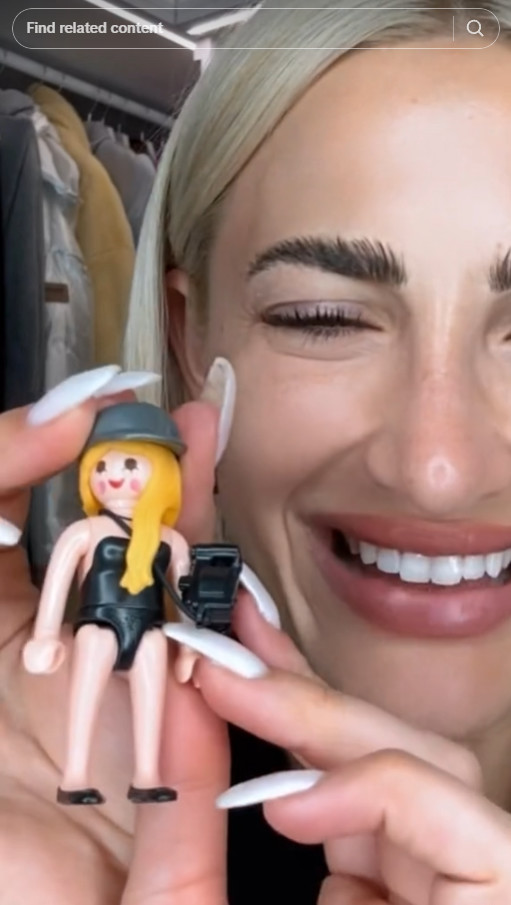 Η Ιωάννα Τούνη ξετρελαμένη με την φιγούρα Playmobil δείχνει στο βίντεο να κρατάει το παιχνίδι στο χέρι της. Μάλιστα η φιγούρα έχει και μια φωτογραφική μηχανή για να βγάζει φωτογραφίες, όπως και κάνει η ινφλουένσερ στην πραγματικότητα.
