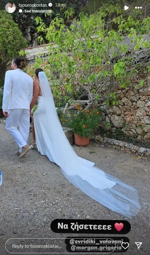 Στα λιγοστά φωτογραφικά στιγμιότυπα, δε, που δημοσιεύθηκαν στα social media, όπως αυτό που ανέβασε ο Κώστας Τσουρός στο Instagram, το ζευγάρι έλαμπε πραγματικά από ευτυχία στην ωραιότερη του στιγμή.