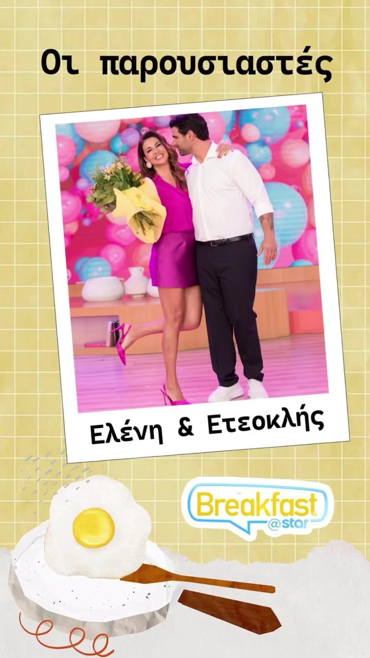 Σημειώνεται ότι σύντομα η Ελένη και ο Ετεοκλής θα επιστρέψουν στην τηλεόραση με την πρωινή εκπομπή τους, «Breakfast@Star», που θα συνεχιστεί για ακόμα μια χρονιά. Φέρνοντας στις οθόνες μας τη ζεστή τους χημεία και τις όμορφες στιγμές τους.