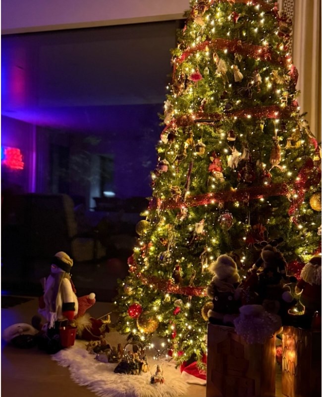 Η ίδια έχει στολίσει όχι μόνο το πανύψηλο δέντρο της αλλά και όλο το σαλόνι της.