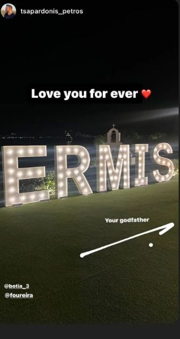 Ο μικρός πήρε το όνομα Ερμής και νονοί του ήταν ο personal assistant της τραγουδίστριας Βασίλης Σιμσιρίκης αλλά και η αδελφή της Ελένης Φουρέιρα.