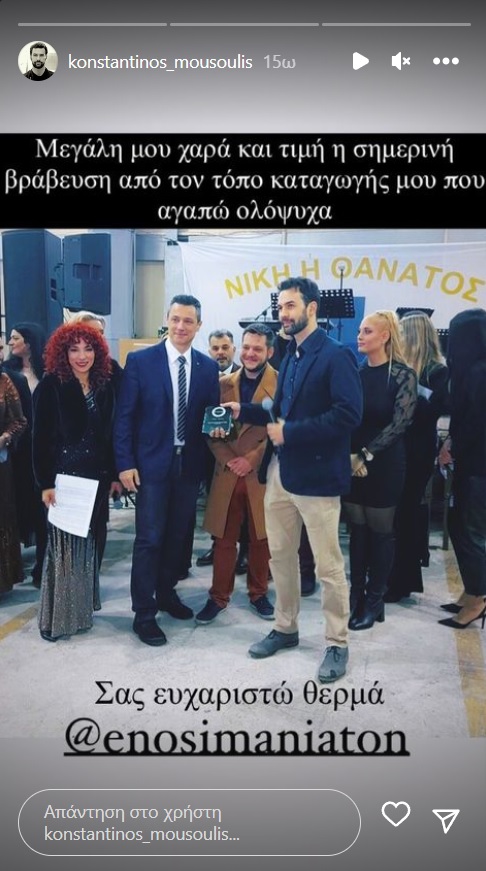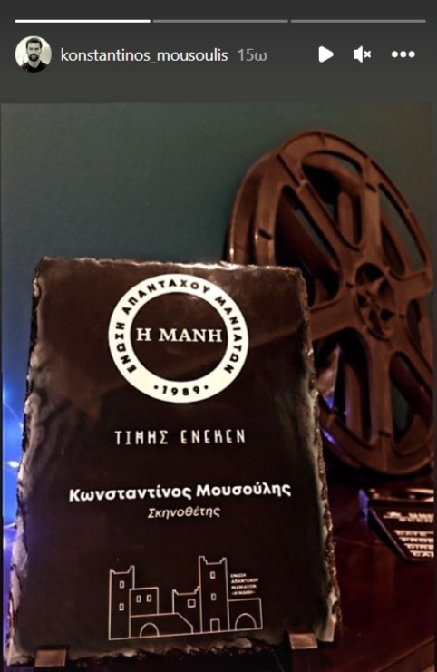Ο Κωνσταντίνος Μουσούλης νωρίτερα είχε βραβευτεί από την Ένωση Απανταχού Μανιατών