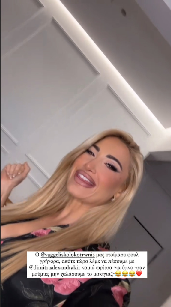 Έκλεισαν τη βραδιά τους επιλέγοντας να διασκεδάσουν υπό τους ήχους ελληνικής μουσικής, ενώ εντύπωση προκαλεί το σχετικό story της γνωστής influencer, στα οποίo φαίνεται να τραγουδά: «Δεν υπάρχουν αντίο στον δρόμο μας, μόνο λίγες στιγμές χωρισμού».