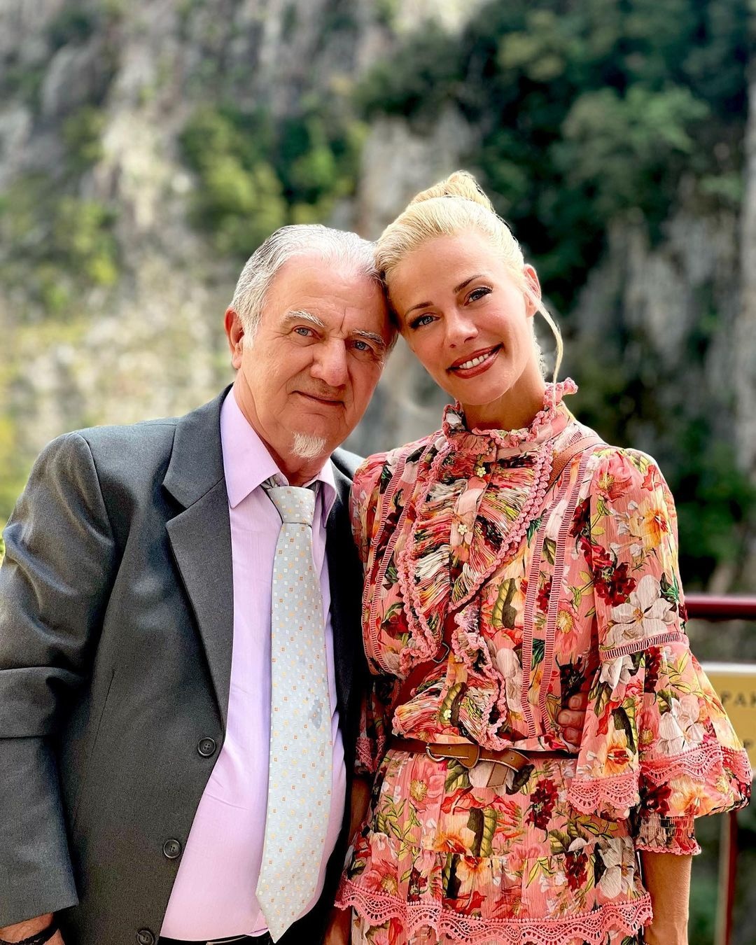 Το μυστήριο τελέστηκε στη μονή της Παναγίας του Προύσσου στο νομό Ευρυτανίας, που όπως γράφει και η ίδια η παρουσιάστρια και ηθοποιός στη λεζάντα της είναι ο τόπος καταγωγής των παππούδων της.