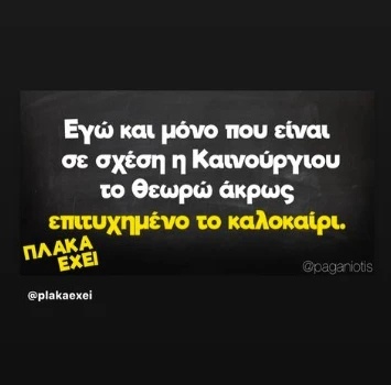 Με διάθεση χιουμοριστική και λίγο πριν επιστρέψει στην Αθήνα για τις ανάγκες της καθημερινής, πρωινής εκομπής “Σούπερ Κατερίνα” που παρουσιάζει στον Άλγα, αναδημοσίευσε ένα από τα τρολ που κυκλοφορούν στα social media για τον απολογισμό του φετινού καλοκαιριού και την αφορούσε. Αυτό ανέφερε χαρακτηριστικά: «Εγώ και μόνο που είναι σε σχέση η Καινούργιου το θεωρώ άκρως επιτυχημένο το καλοκαίρι».