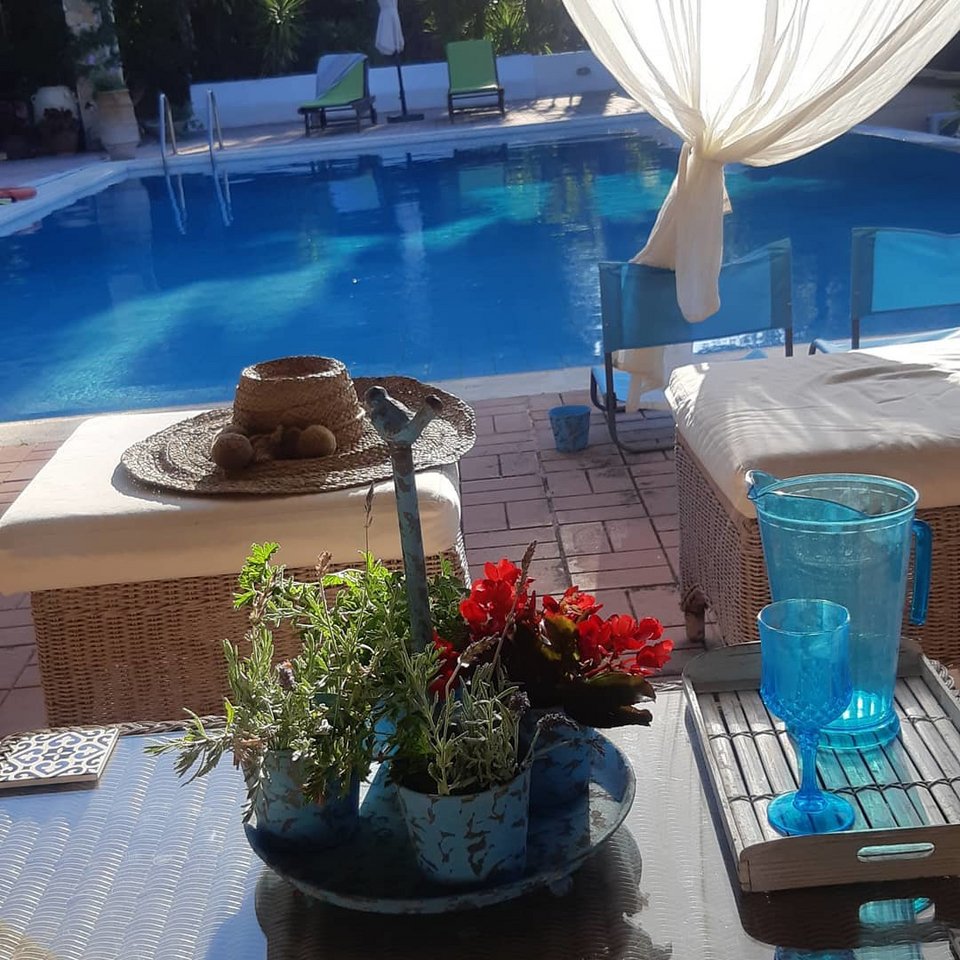 Η Μιμή Ντενίση στον Θεολόγο έχει δημιουργήσει έναν παράδεισο πλημμυρισμένο από φύση, μία καταπράσινη κατοικία με πεύκα, θάμνους και όμορφα λουλούδια.