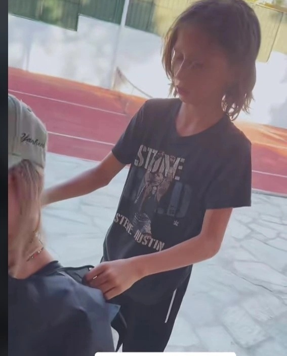 Η τραγουδίστρια δημοσίευσε ένα βίντεο στο Tik Tok στο οποίο απεικονίζεται τη να κάθεται με τον μεγαλύτερο εγγονό της, Νικόλα και να παίρνει την ξυριστική μηχανή για να κουρέψει τη γιαγιά του!