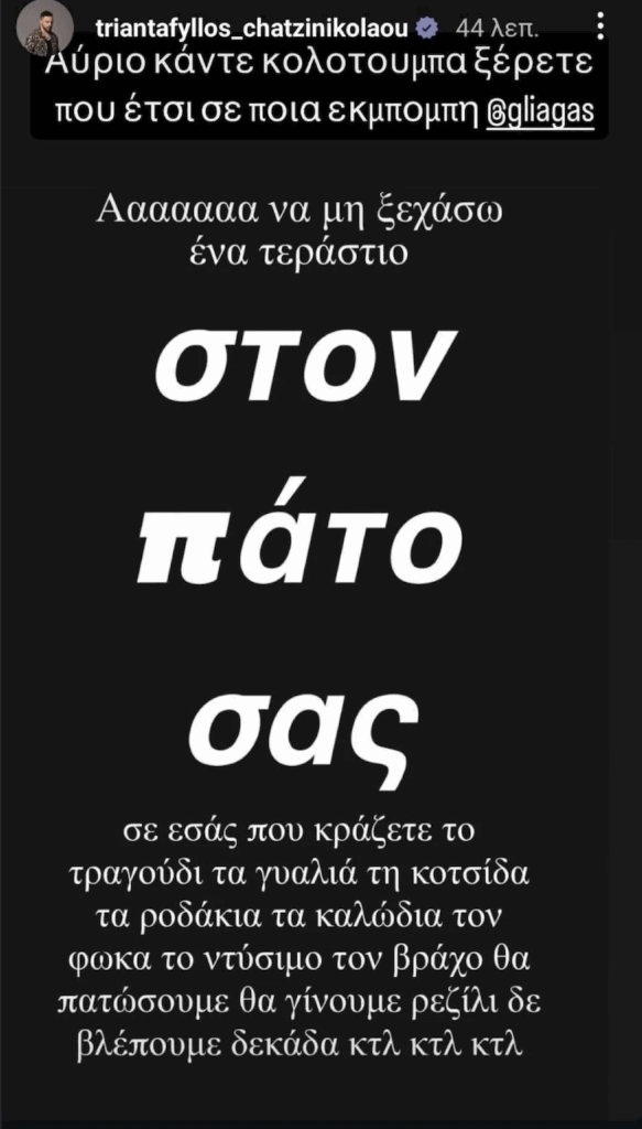 Συγκεκριμένα, μέσα από την ανάρτησή του στον προσωπικό του λογαριασμό στο Instagram, έριξε τα «πυρά» του ευθέως στον Γιώργο Λιάγκα και την εκπομπή Το Πρωινό, κάνοντας μάλιστα ταγκ τον παρουσιαστή στο story του, κράζοντάς τον για τον σχολιασμό του.