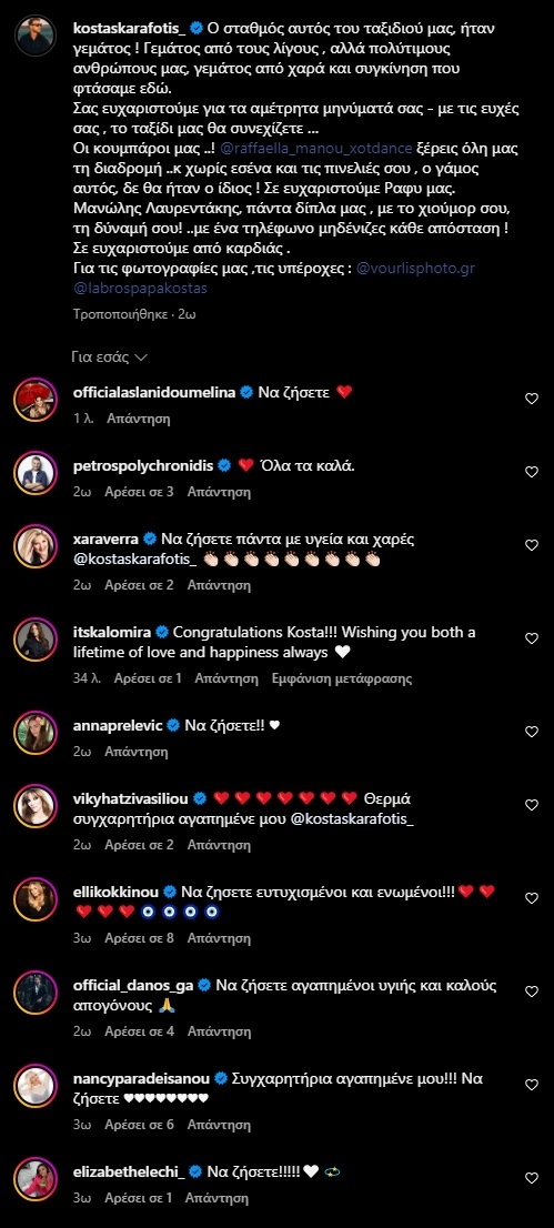 Η πρώτη ανάρτηση του Κώστα Καραφώτη μετά τον γάμο του