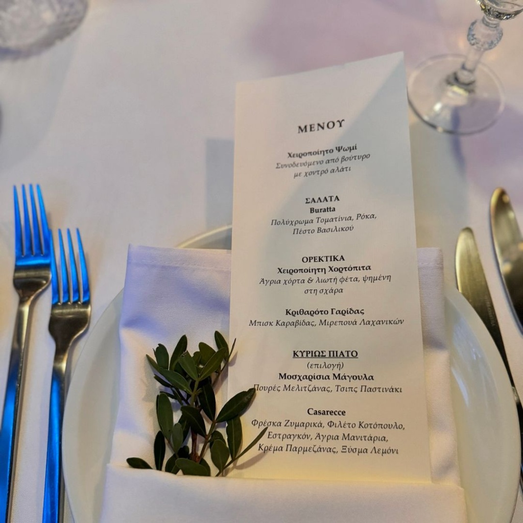 Μάλιστα η Ελένη Πετρουλάκη μοιράστηκε μερικές φωτογραφίες από την ιδιαίτερη μέρα και ανάμεσα σε αυτές μας έδειξε και το μενού που επέλεξε το ζευγάρι για το δείπνο μετά τον γάμο του αλλά και την μπομπονιέρα του!