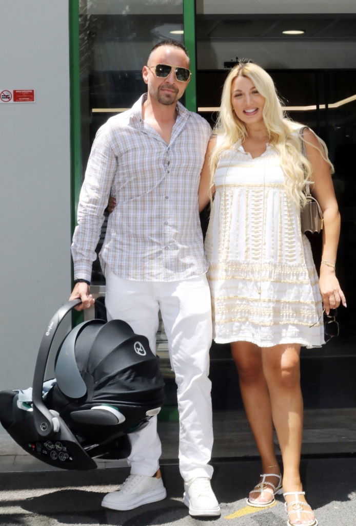 Η παρουσιάστρια πόζαρε με τον σύζυγό της και το νεογέννητο μωρό της και δείτε καρέ καρέ την έξοδό της από το μαιευτήριο.