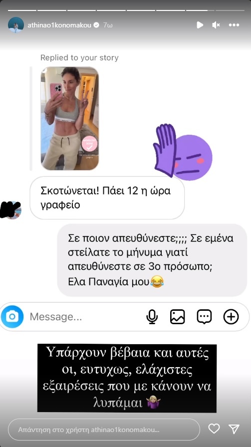 Το στόρι της Αθηνάς Οικονομάκου στο Instagram