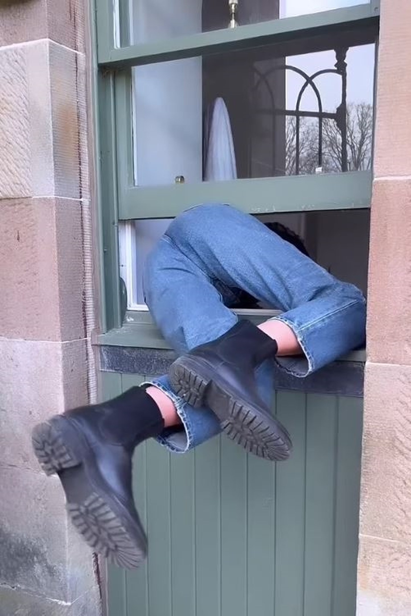Το ξεκαρδιστικό βίντεο τη δείχνει μισή μέσα μισή έξω από το παράθυρο με τα πόδια της να κρέμονται έξω από το σπίτι. Ωστόσο, η Μαρία Ολυμπία -που ήταν ντυμένη με μπλε τζιν και μπότες Chelsea- κατάφερε να χωρέσει από το μικρό άνοιγμα. Μόλις τα κατάφερε, το μοντέλο αναψοκοκκινισμένο γύρισε προς την κάμερα και δεν μπορούσε να συγκρατήσει τα γέλια του.
