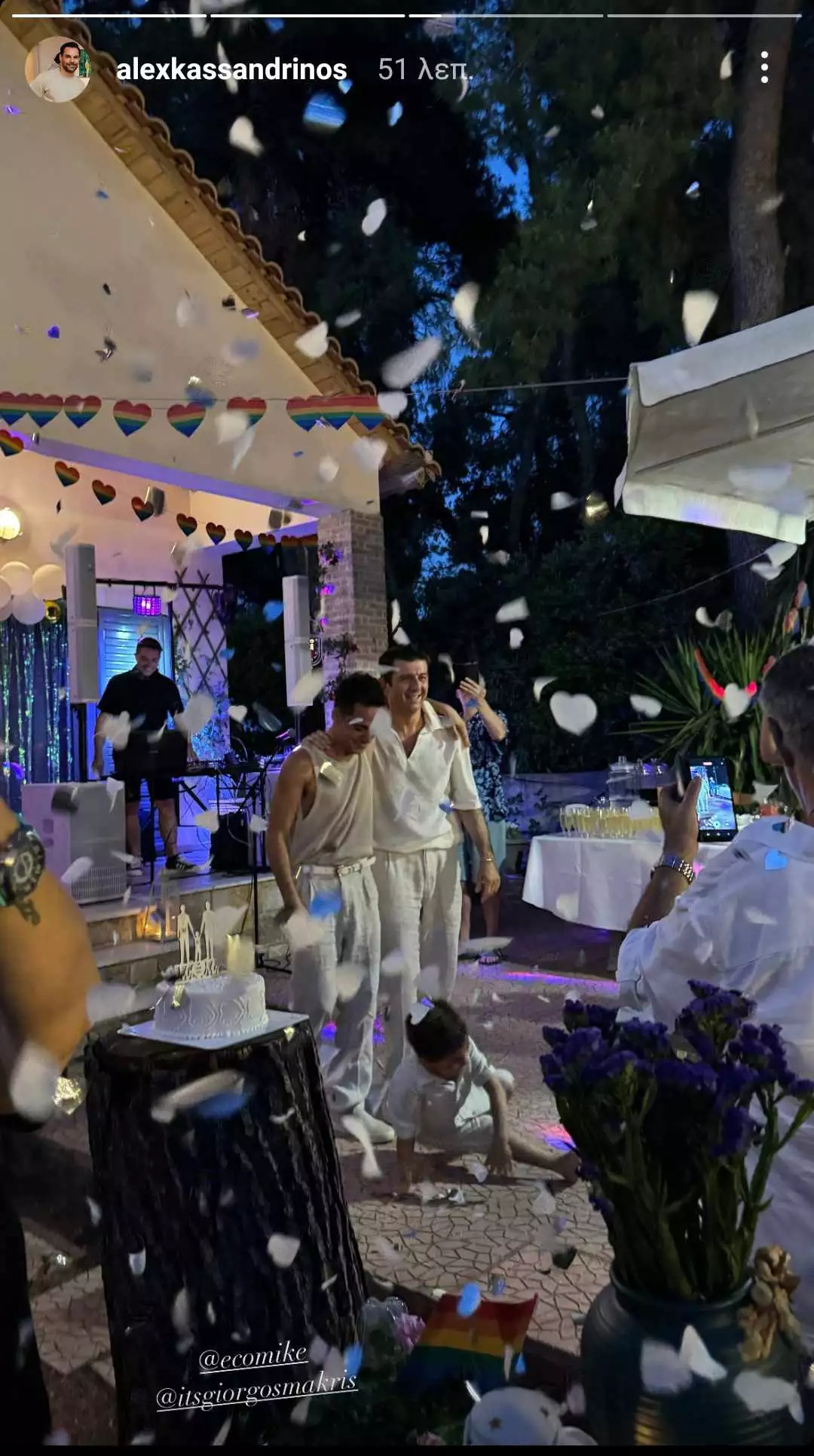 Καλεσμένοι επίσης ήταν η Μαρία Καβογιάννη και η Τζένη Θεωνά, αλλά και ο δικηγόρος Αλέξανδρος Κασσανδρινός, ο οποίος και μοιράστηκε φωτογραφίες από τον γάμο των φίλων του.