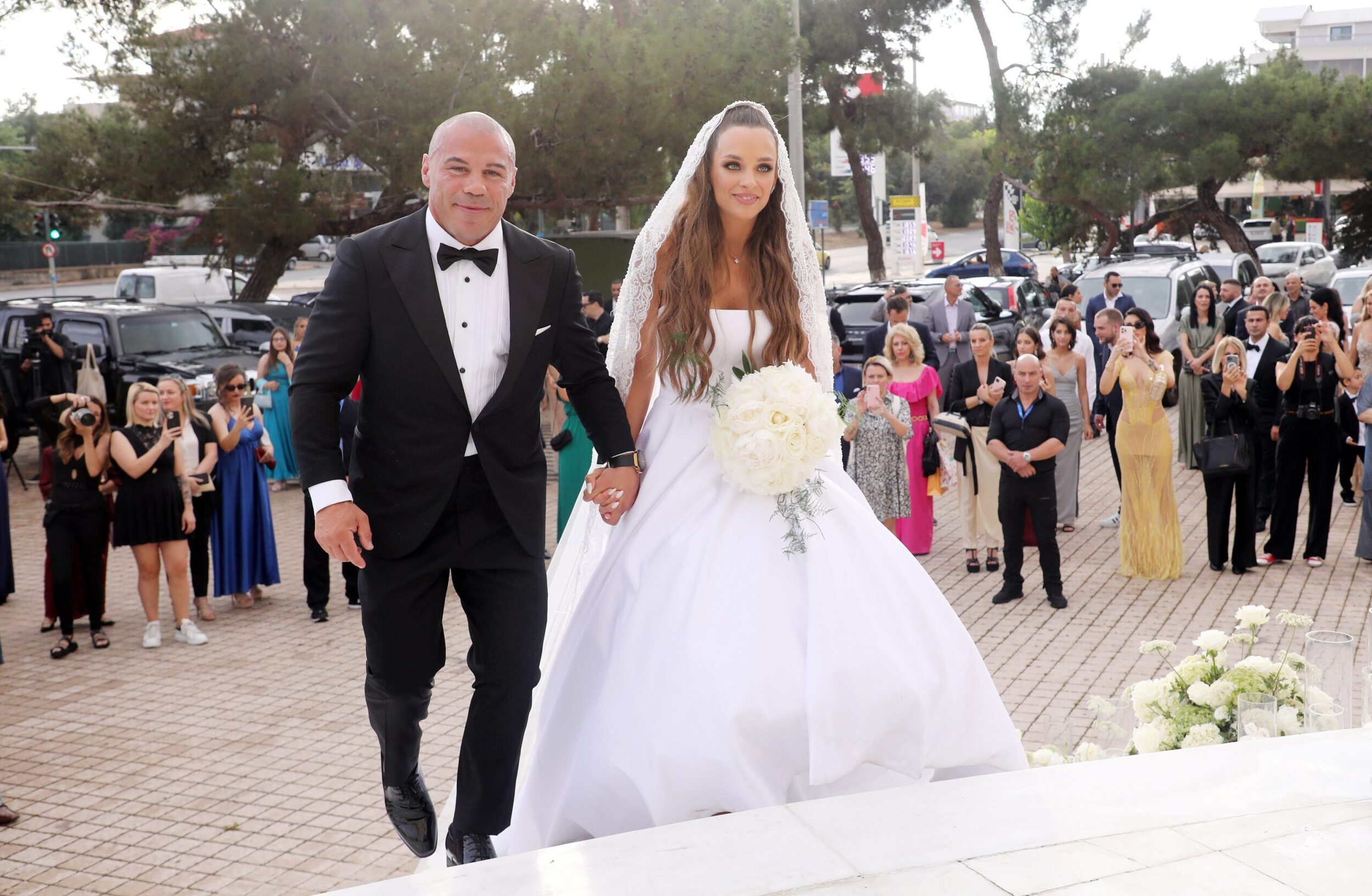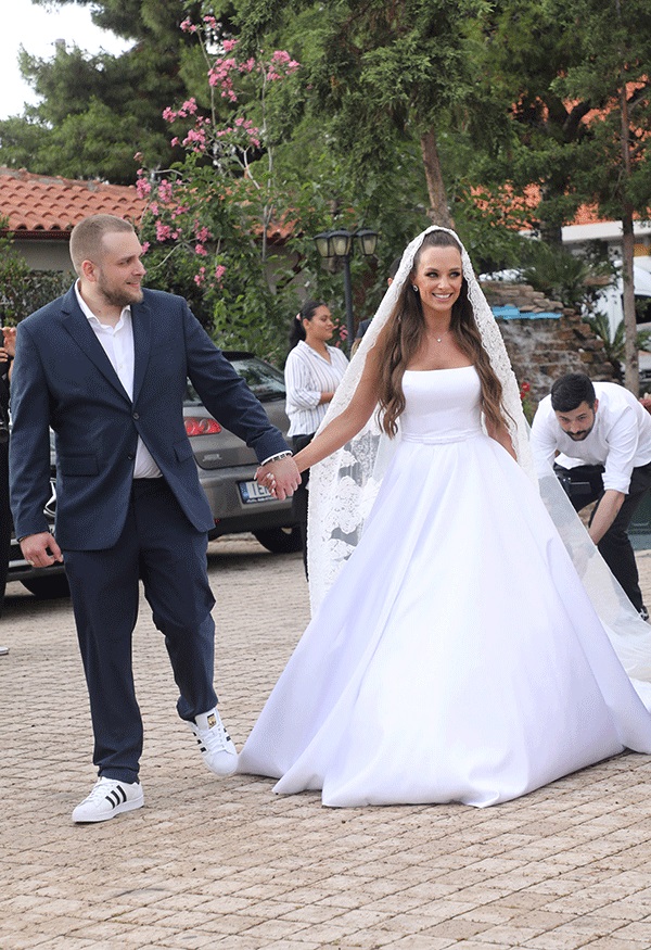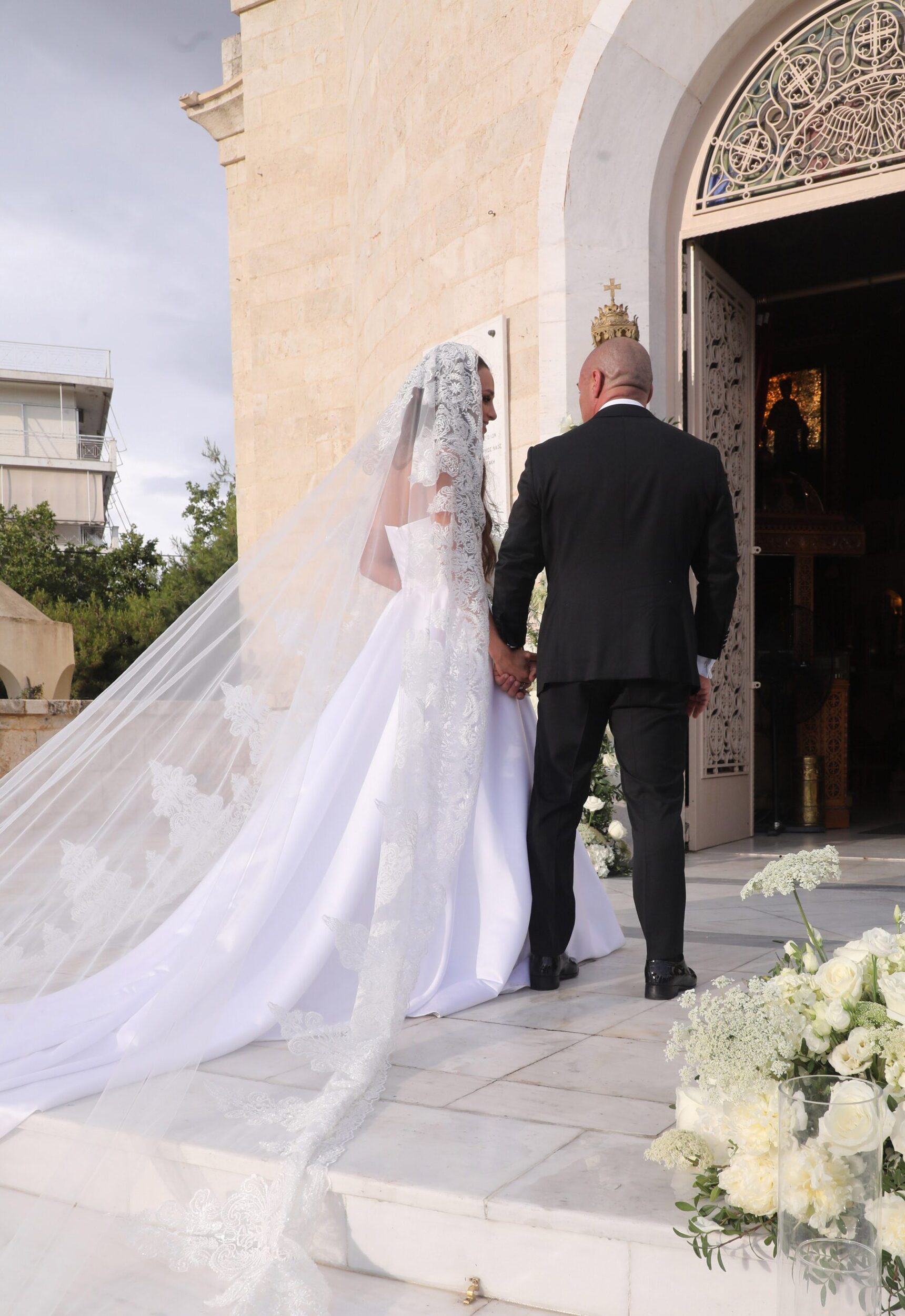 Ο Μιχάλης Ζαμπίδης έφτασε πρώτος στην εκκλησία, όπου περίμενε μαζί με τις κόρες του τη σύντροφό του, ενώ, μερικά λεπτά αργότερα, στον Ιερό Ναό έφτασε και η Μαρία Καρολίνα Ντάσιου, η οποία έλαμπε μέσα στο ολόλευκο νυφικό της, το οποίο ανήκει στη σχεδιάστρια Anna Veneti.