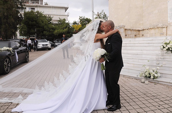 Μάλιστα, ο Μιχάλης Ζαμπίδης αντί να περιμένει την αγαπημένη του να ανέβει τα σκαλιά της εκκλησίας, την πλησίασε και αφού την έπιασε από το χέρι, της πρόσφερε την ανθοδέσμη και μαζί ανέβηκαν τα σκαλοπάτια προκειμένου να μπουν στο εσωτερικό του Ναού για να αρχίσει το μυστήριο του γάμου.