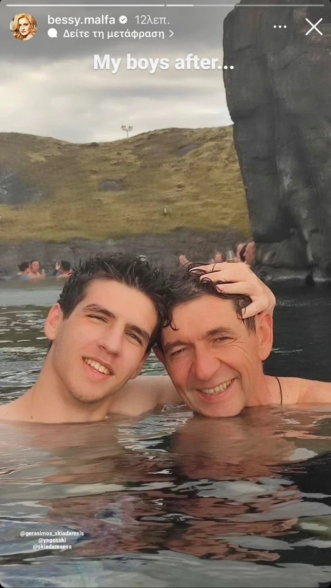 Η Μπέσσυ Μάλφα, μέσω του προσωπικού της λογαριασμού στο Instagram, μοιράστηκε με τους ακόλουθούς της μία πολύ γλυκιά καλοκαιρινή φωτογραφία, στην οποία βλέπουμε να ποζάρει μέσα στη θάλασσα ο Γεράσιμος Σκιαδαρέσης με τον γιο τους Γιάγκο.